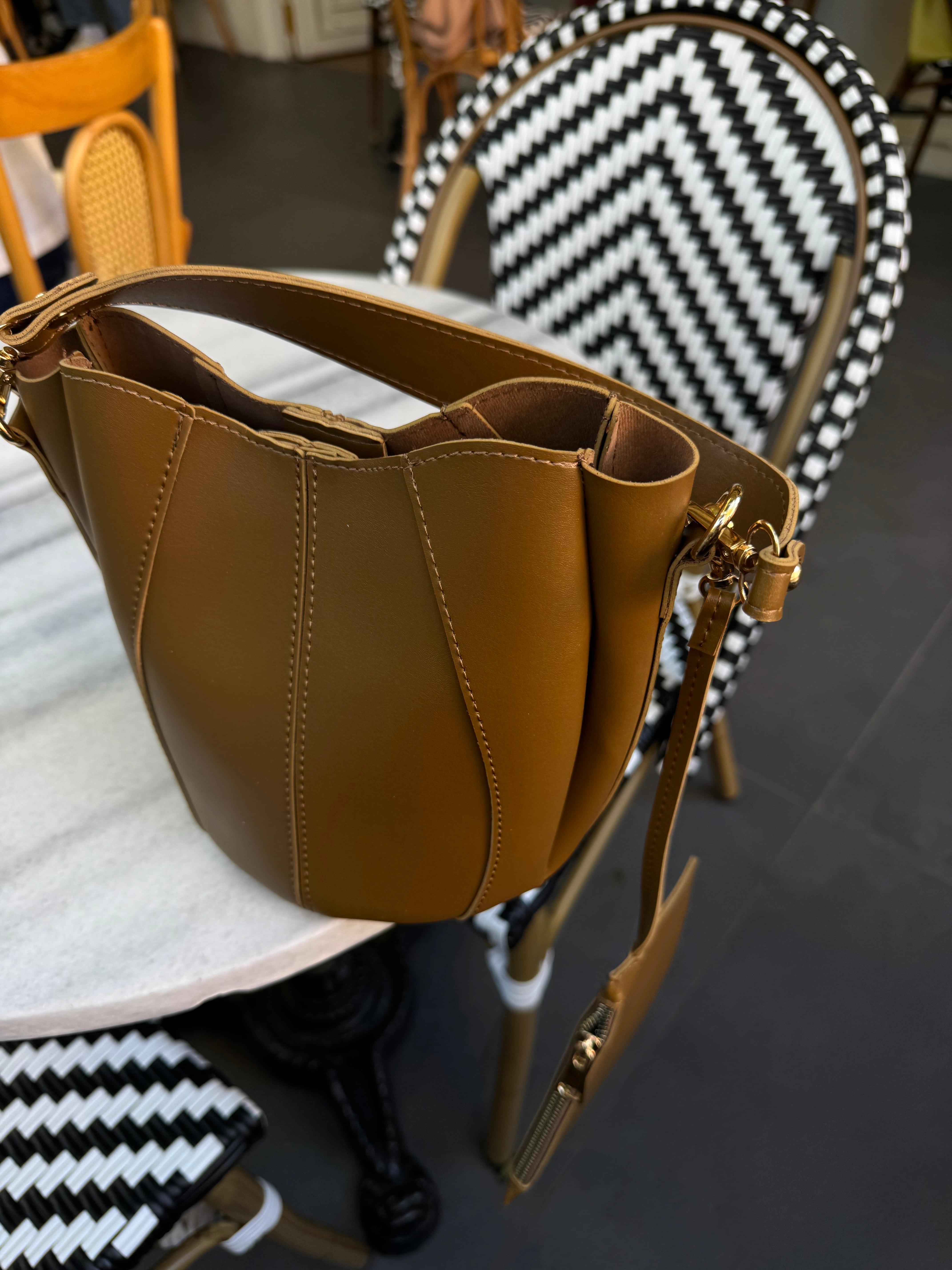 Çantamız suni deri malzemeden üretilmiştir. İç kısmı astarsız yumuşak süet dokudadır. Tek bölmeden oluşmaktadır. El askısı ve uzunluğu ayarlanabilir kolon omuz askısı ile birlikte gelmektedir. Çanta ile birlikte fermuarlı cüzdan aksesuar gelmektedir.