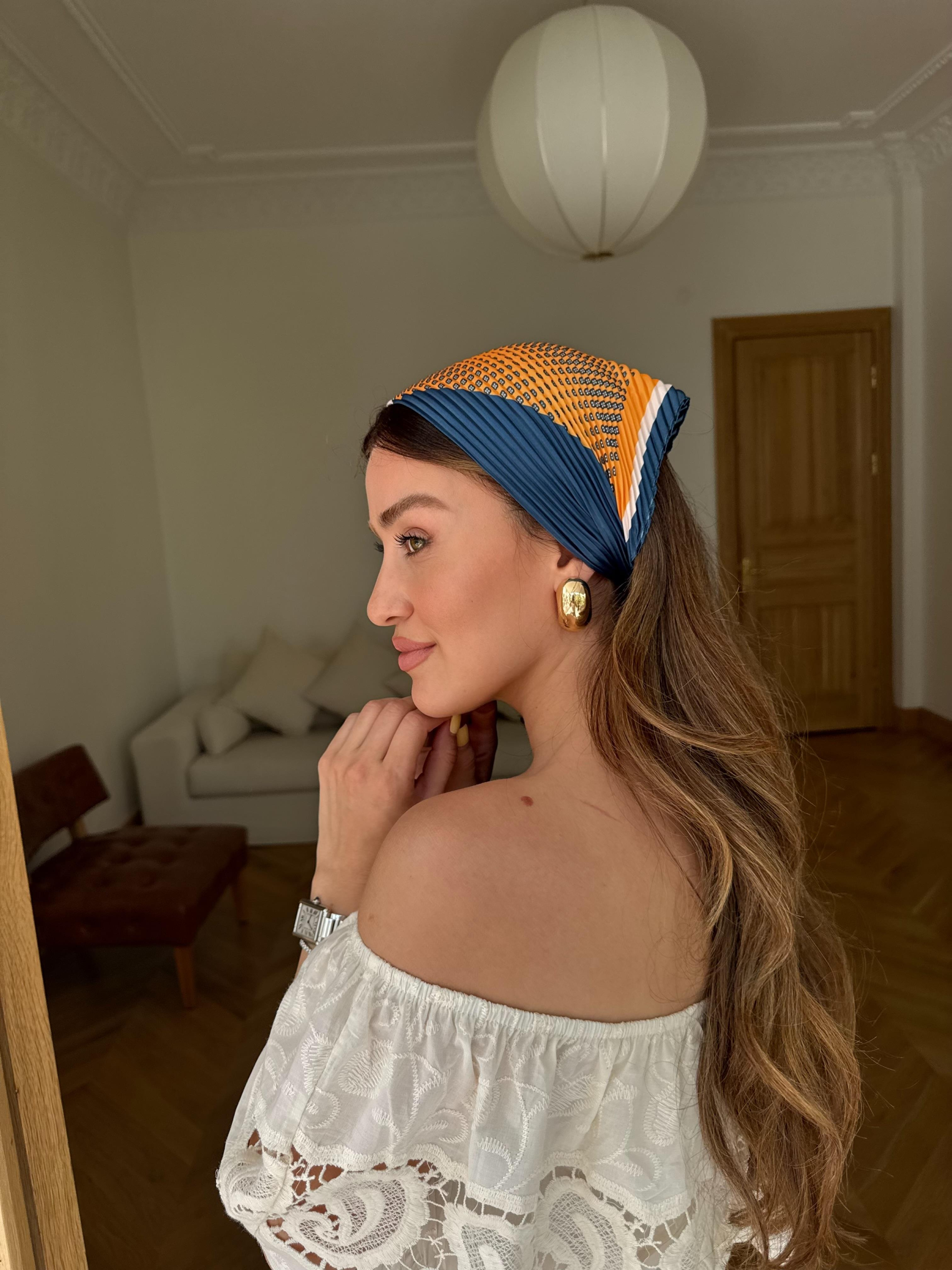 Fularımız boyunda, bilekte ve aksesuar olarak kullanıma uygundur. Bu modelimiz kat izli formdadır.