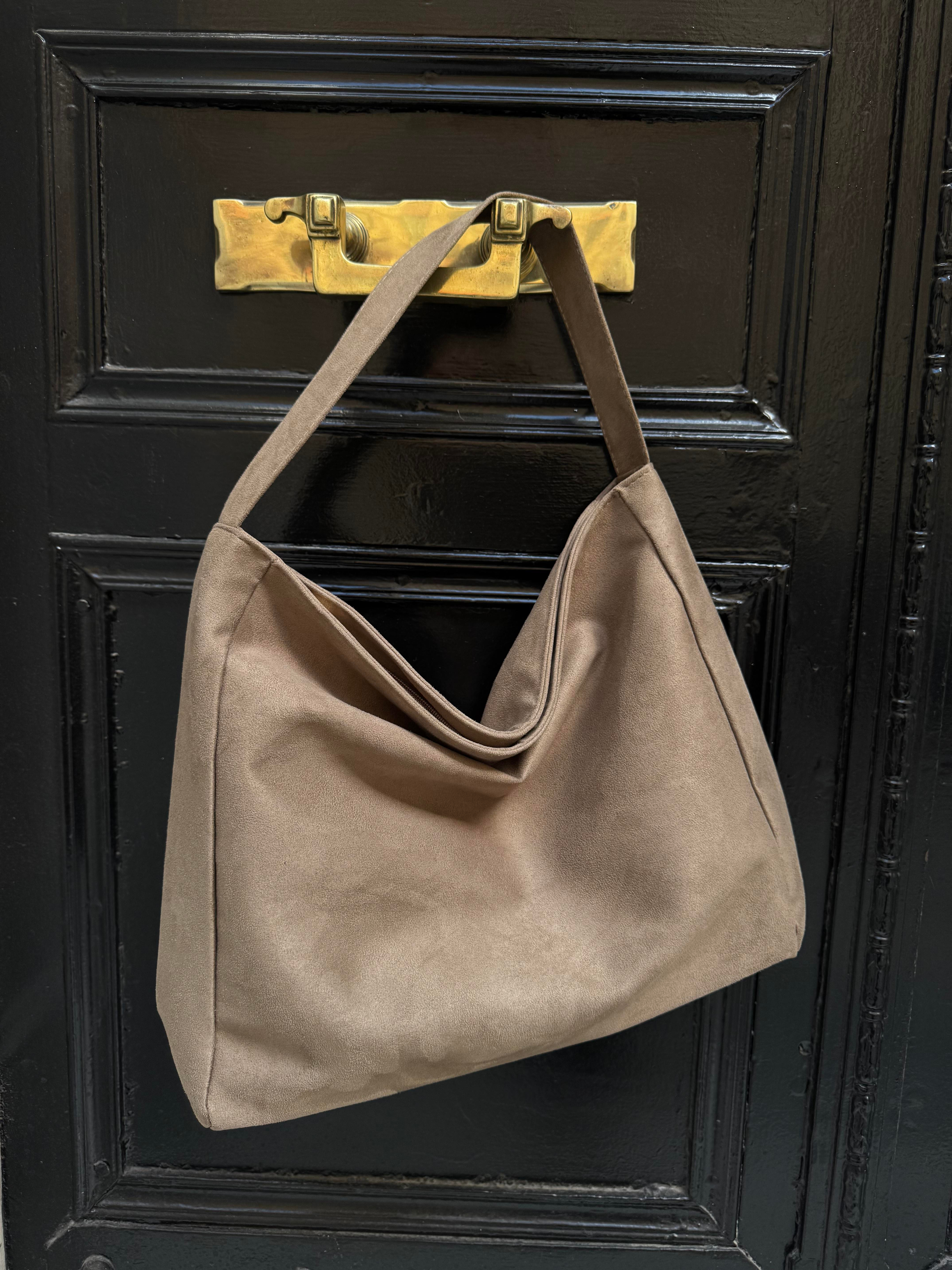 Yumuşak Dokulu Salaş Süet El ve Omuz Çantası Vizon